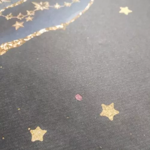 На одной стороне имеется типографский брак - небольшое, малозаметное пятнышко. Легко спрятать за декором