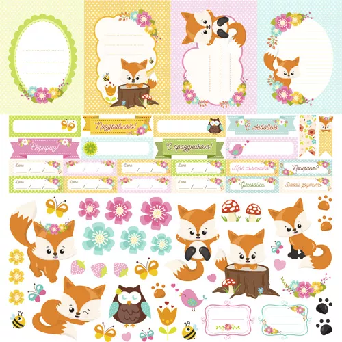 Создавайте уникальные истории с Бумага "Лисичка на горошинке. Теги и картинки" (ScrapMania). Яркие цвета, интересные узоры и различные текстуры — все, что нужно для ваших творческих экспериментов.