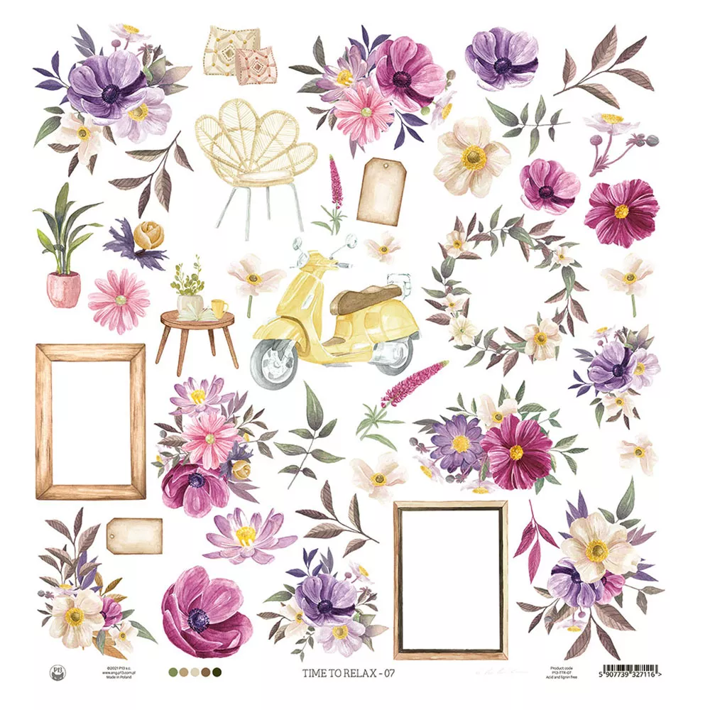 Создавайте уникальные истории с Бумага "Time to relax 07" (Piatek13). Яркие цвета, интересные узоры и различные текстуры — все, что нужно для ваших творческих экспериментов.