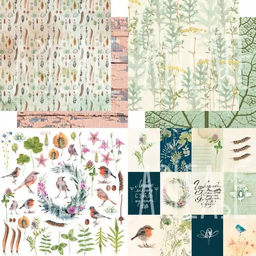 В наборе 10 различных двусторонних листов, 1 лист с карточками и 1 лист для вырезания. Плотность 190 гр/м2. Загадочные цвета природы и завораживающие очертания растений вдохновят любого любителя жанра "ботаника" или просто порадует легкими фонами