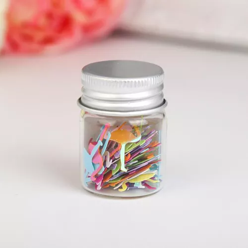 Описание Красивая стеклянная баночка с закручивающейся металлической крышечкой наполнена милыми перламутровыми фламинго. Размер баночки 4,3х2,9х2,9 см, размер пайеток 2,1х1,2 см