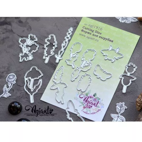 В наборе 12 ножей. Размер от 2,7х1,5 см до 5,8х2,4 см. Сочетаются со штампами "На полянке №2" (арт. )