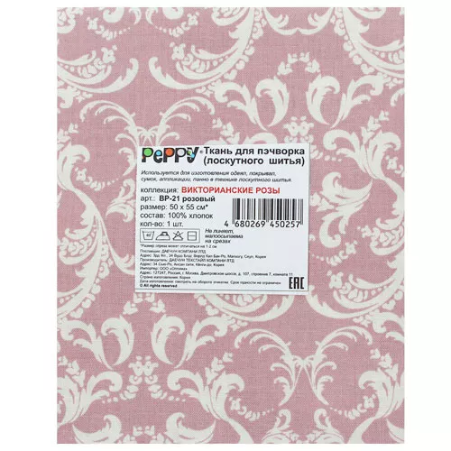 Отрез ткани 50х55 см "Викторианский узор. Темно-розовый" (Peppy)